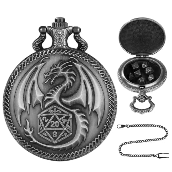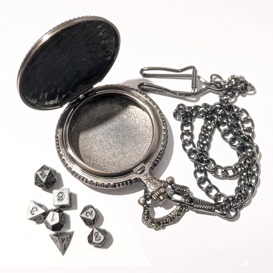 懐中時計型ケース+ミニメタルダイスのセット