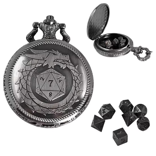 懐中時計型ケース+ミニメタルダイスのセット
