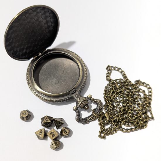 懐中時計型ケース+ミニメタルダイスのセット