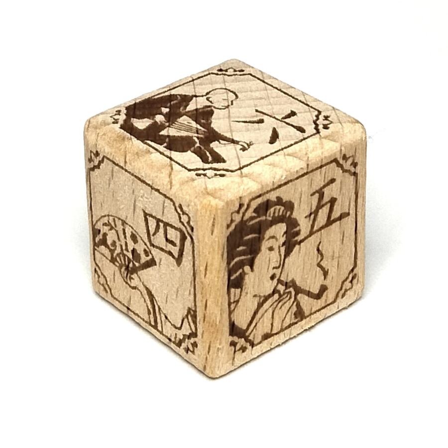 一富士二鷹三茄子四扇五煙草六座頭の木製サイコロ