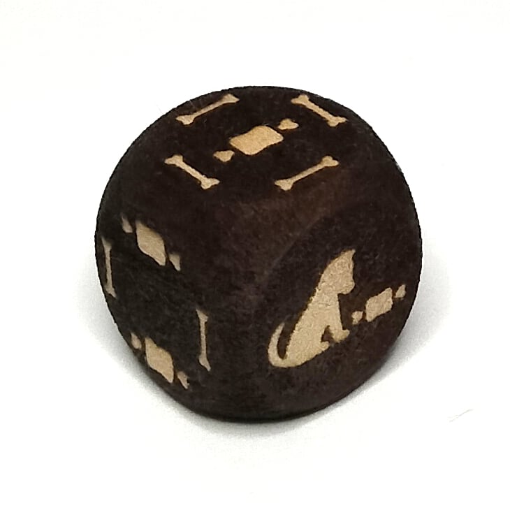 犬と肉【木製16mm・ネガ】6面焼きダイス DTDw16mm08