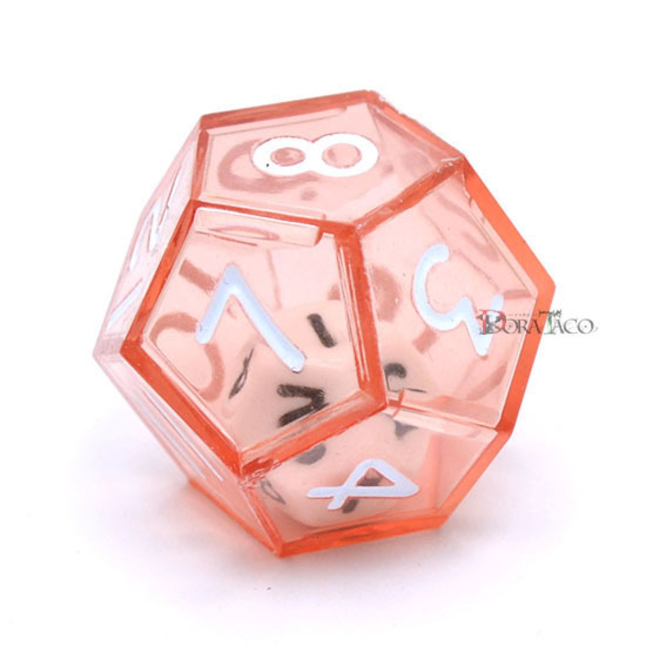 2D12で活躍してくれる透明な12面サイコロの中に12面サイコロが入った二重構造のサイコロです。