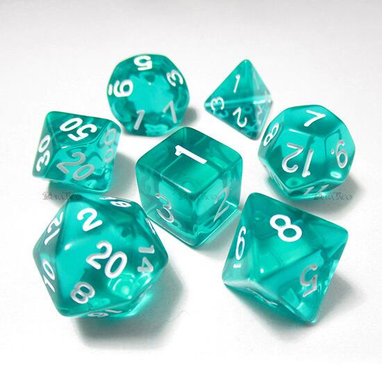 透明【青緑/エメラルドグリーン】多面体7個セット サイコロ(ダイス)