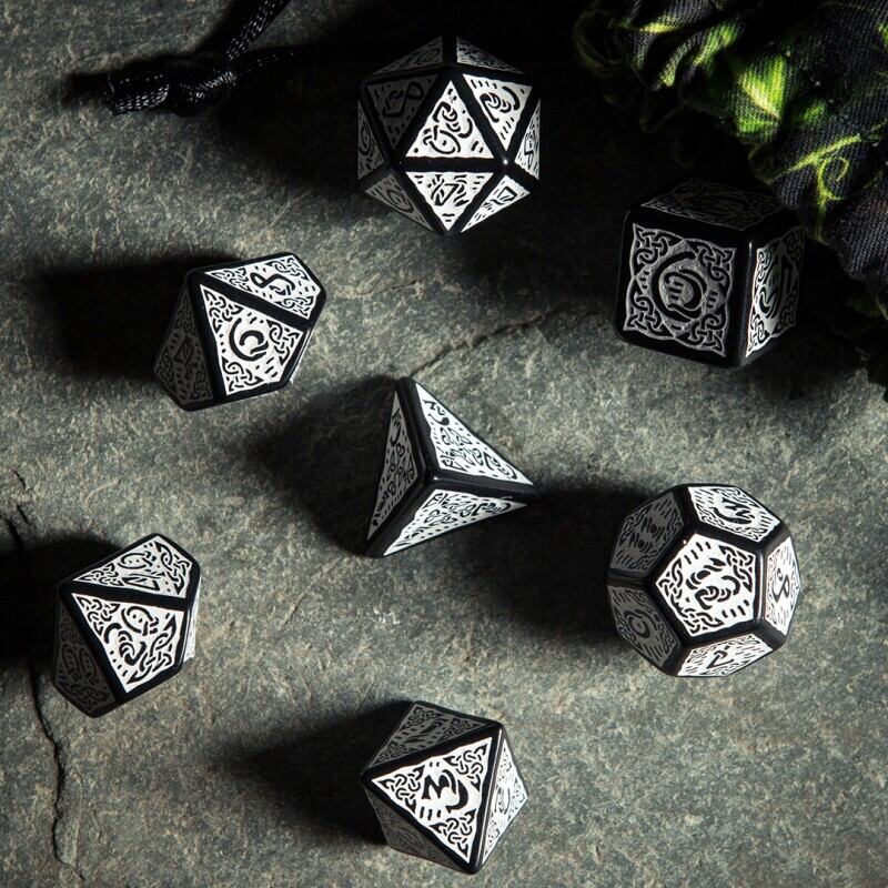 ケルト(Celtic)【ブラック&ホワイト】ダイス 7個セット Dice Set Q-WORKSHOP