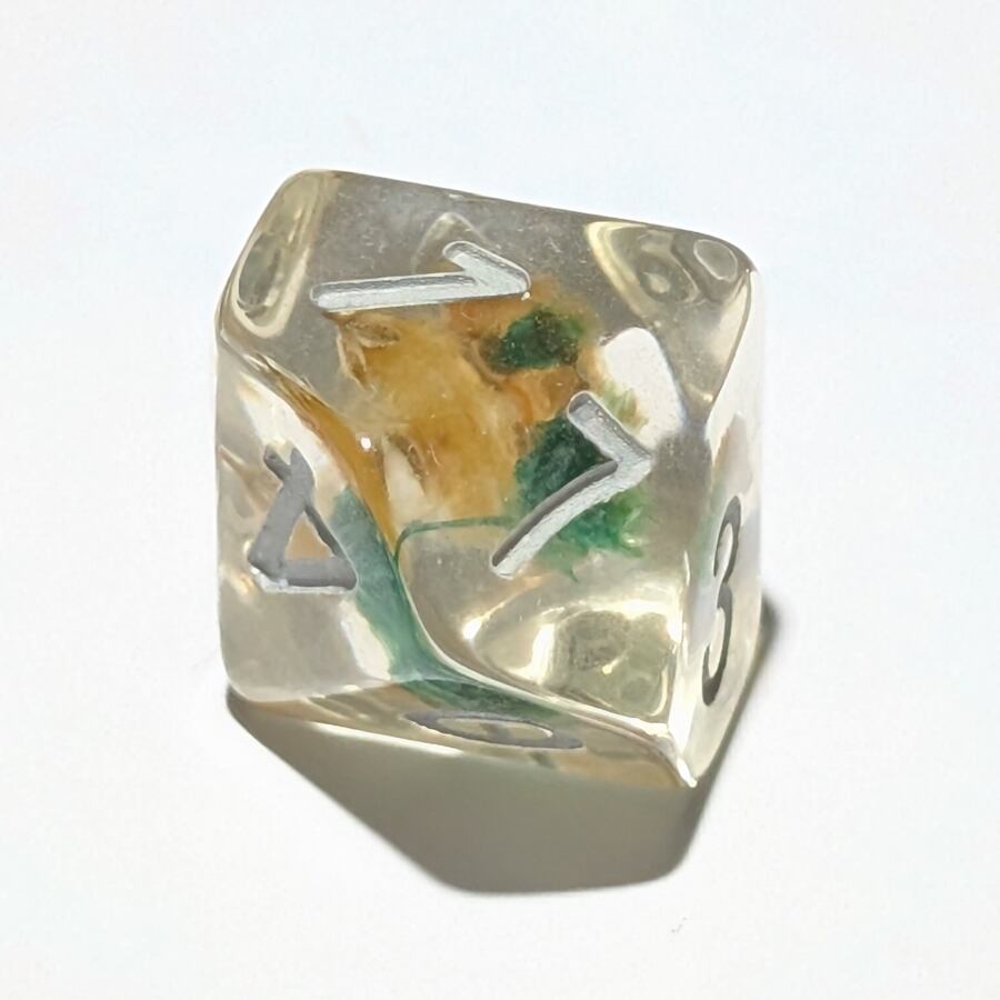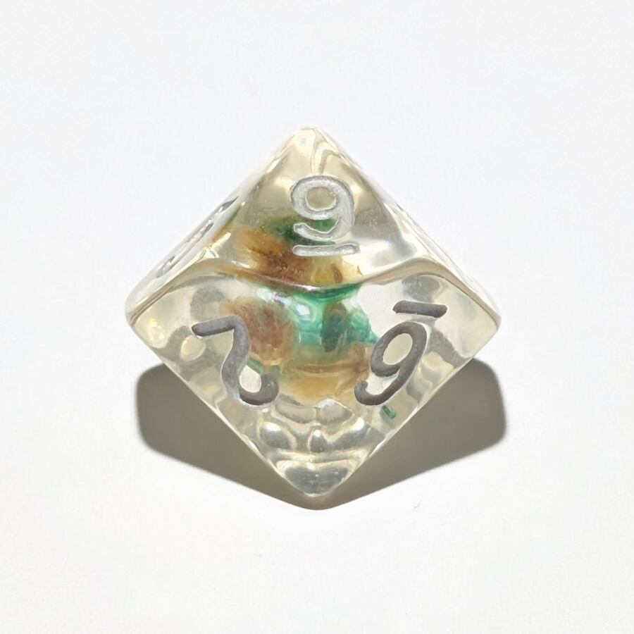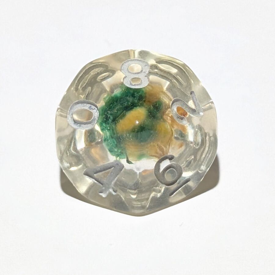 単品◆かすみ草【深緑&山吹】10面ダイス(サイコロ) フラワー 2603D1021