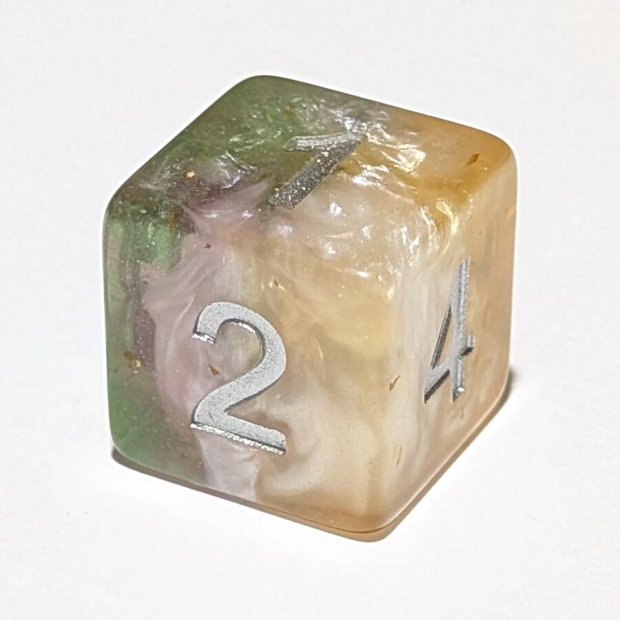 単品◆マーブル【パールホワイト・ピンク・グリーン・イエロー】6面ダイス(サイコロ) 2603D0614