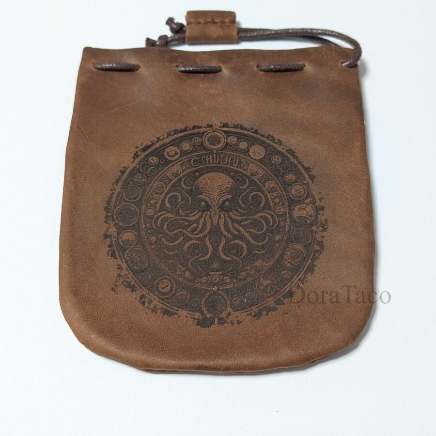 本革製巾着袋【クトゥルフ】 革袋 ダイスバッグ DTLeatherBag01