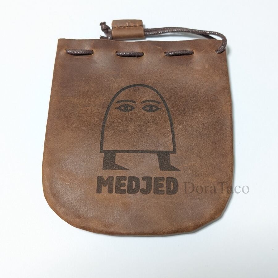 本革製巾着袋【メジェド神1】 革袋 ダイスバッグ DTLeatherBag07