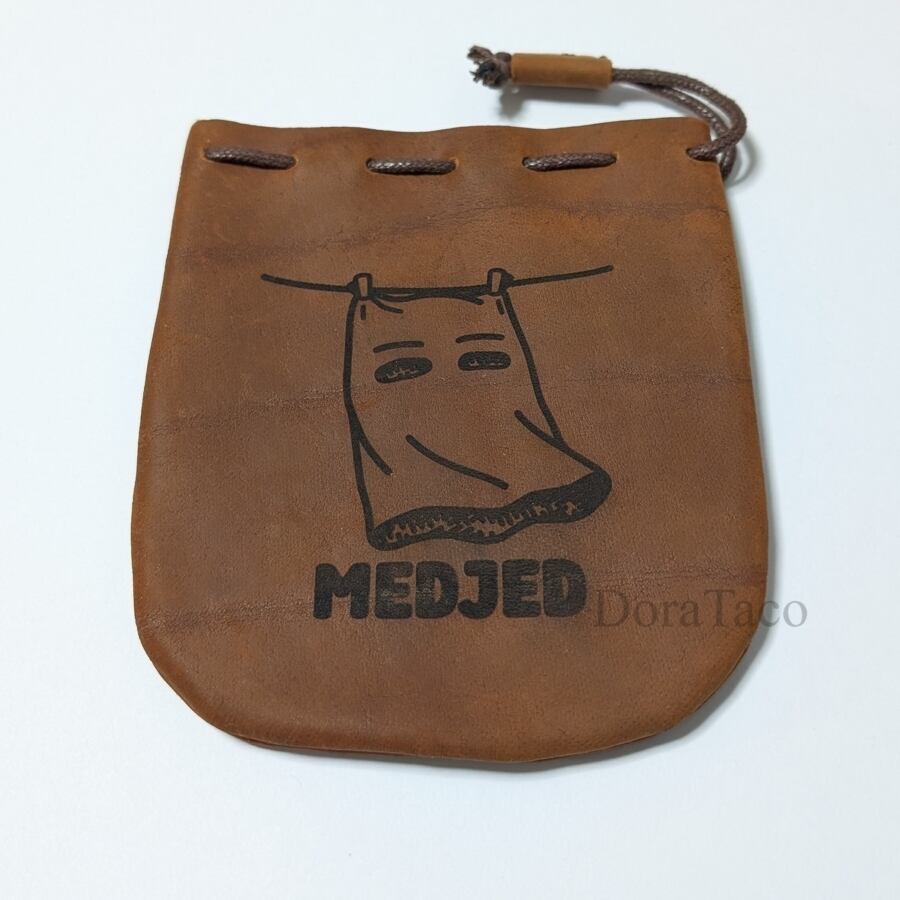 本革製巾着袋【メジェド神2】 革袋 ダイスバッグ DTLeatherBag08