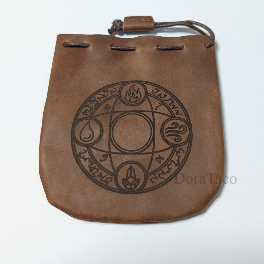 本革製巾着袋【冒険者/四大元素の魔法陣】 革袋 ダイスバッグ DTLeatherBag14