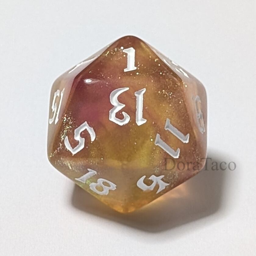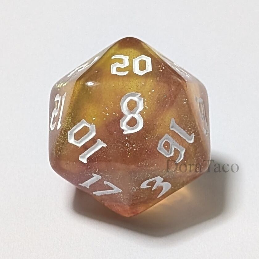 宇宙を連想させる微細なラメの入った美しい20面体ダイス。