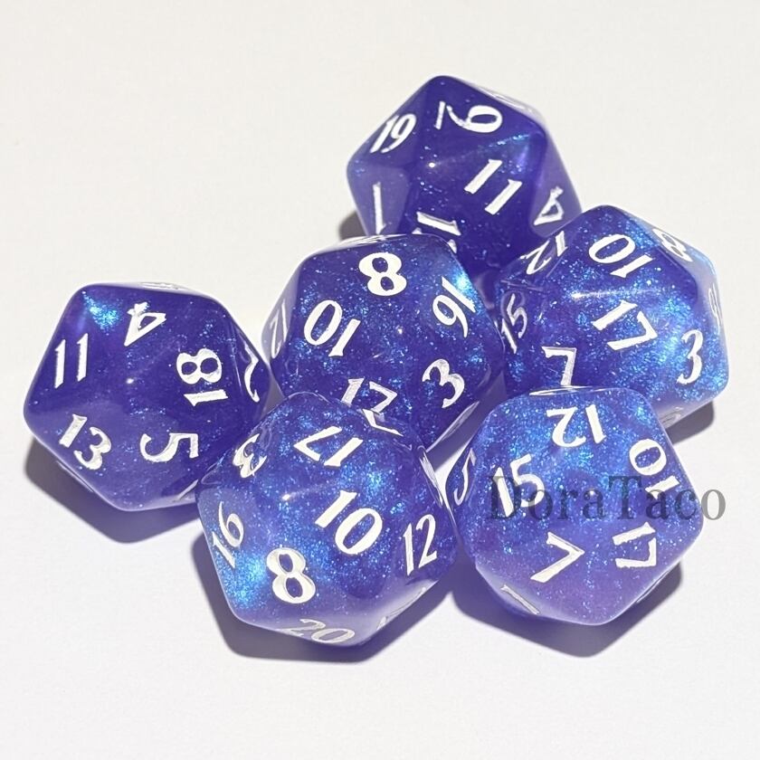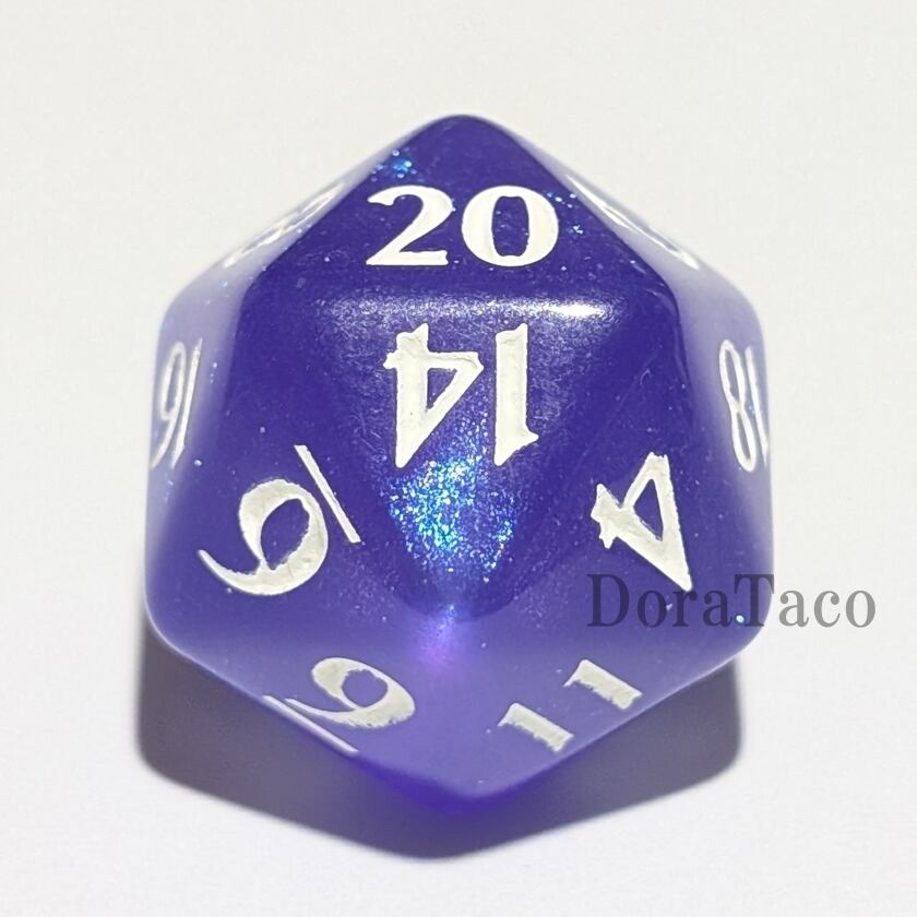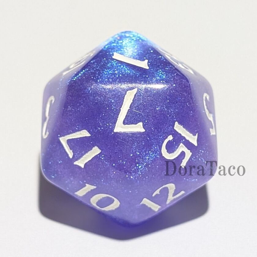 宇宙を連想させる微細なラメの入った美しい20面体ダイス。