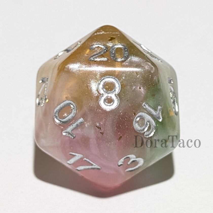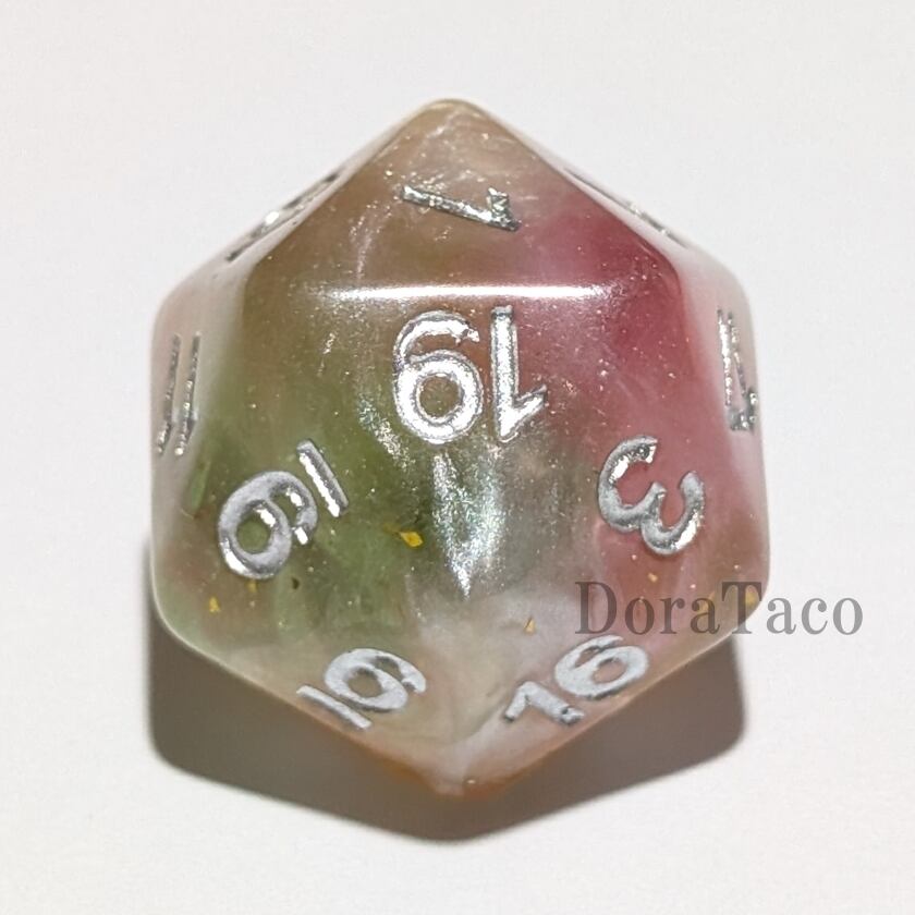 単品◆マーブル【パールホワイト・ピンク・グリーン・イエロー】20面ダイス(サイコロ) 2603D2003