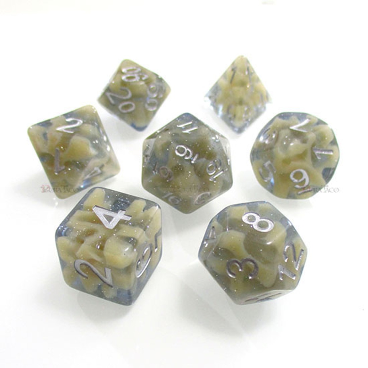 ラメ加工ダイス【マイタケ ホワイト】 多面体ダイス7個セット HDH02