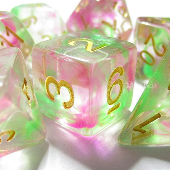 桜3色 多面体ダイス7個セット【濃桜・緑・透明】 HDS01