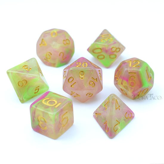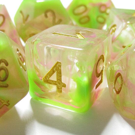 桜4色 多面体ダイス7個セット【濃桜・緑・黄・透明】 HDS06