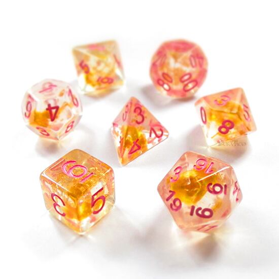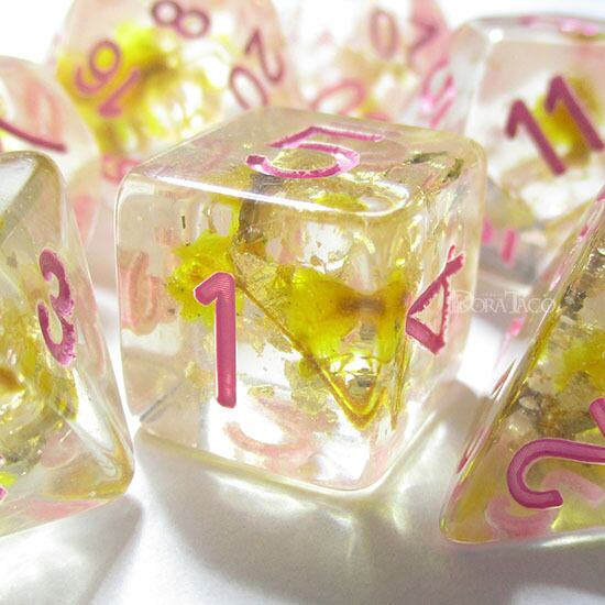 カスミソウの花◆花入りサイコロ7個セット【イエロー&ピンク】多面体ダイス UDRFL01yfwg