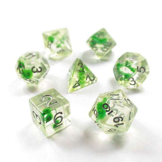 カスミソウの花◆花入りサイコロ7個セット【グリーン&シルバー】多面体ダイス UDRFL01gfws