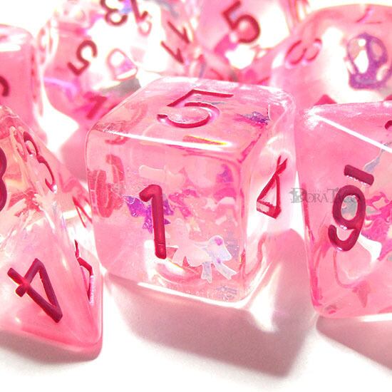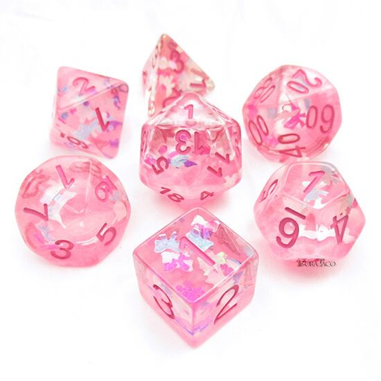 リボン型ラメ入り【ピンク】サイコロ7個セット UDRDL02