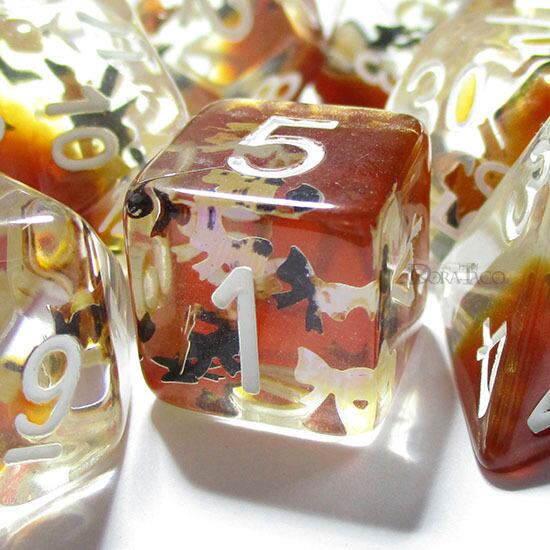 リボン型ラメ入り【ブラウン】サイコロ7個セット UDRDL0106brown
