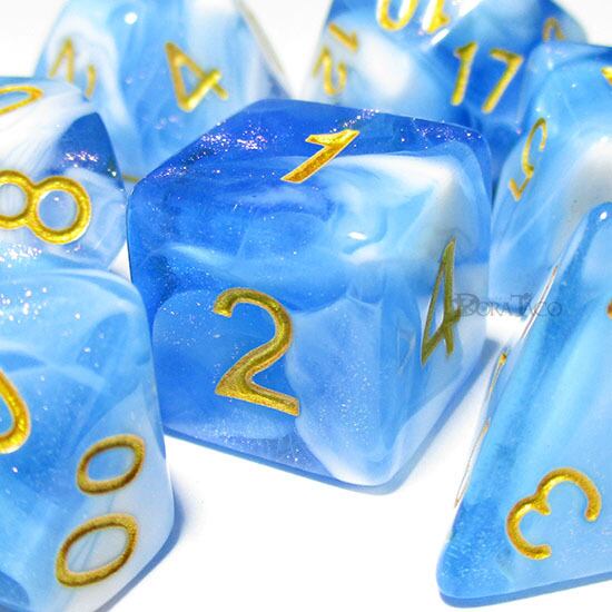 マーブルグリッター【青&白】 多面体ダイス7個セット UDACGL13