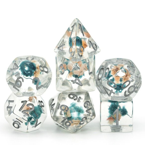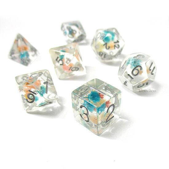 フラワーダイス【青&ベージュ】 多面体サイコロ7個セット UDREFL09