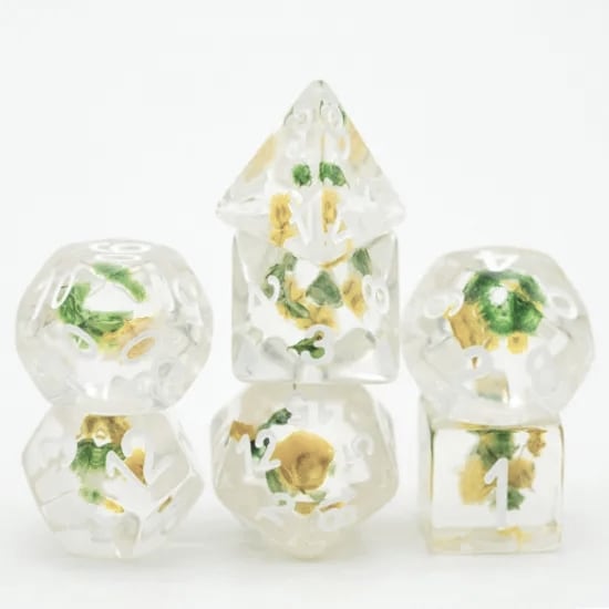 フラワーダイス【緑&黄色】 多面体サイコロ7個セット UDREFL10