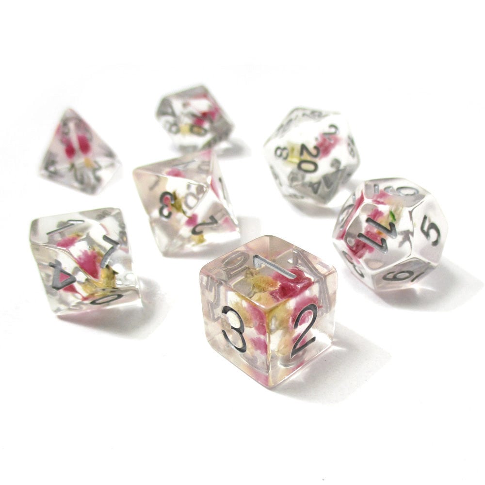 フラワーダイス【ピンク&ベージュ】 多面体サイコロ7個セット UDREFL12