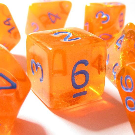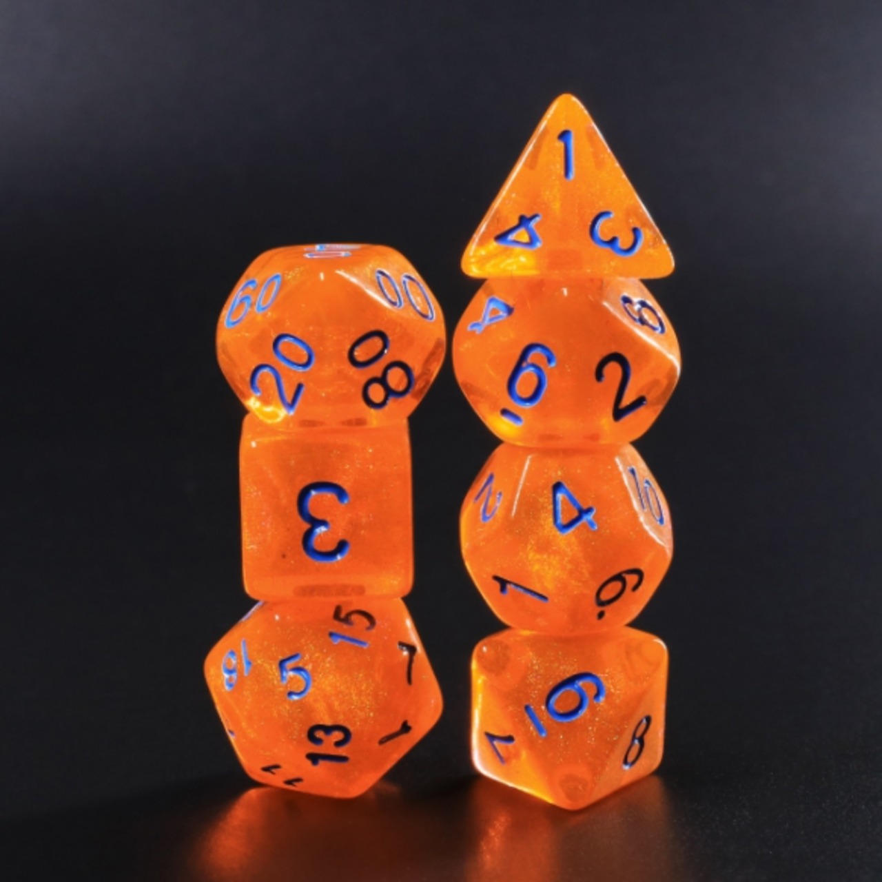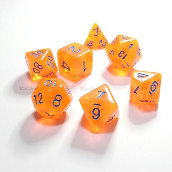 ラメ加工【パンプキンオレンジ】 多面体ダイス7個セット HDAR58