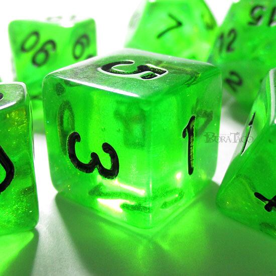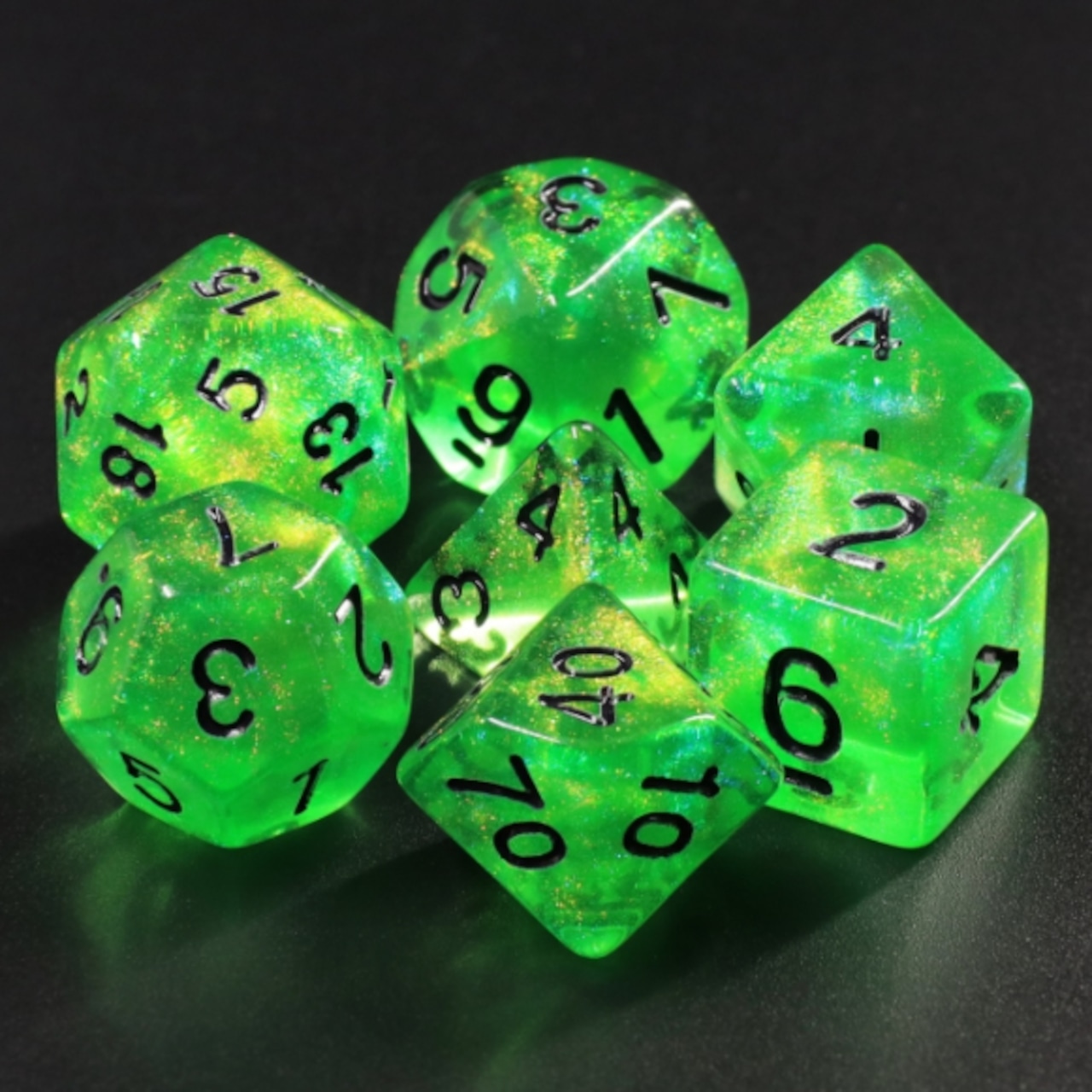 ラメ加工【フロストグリーン】 多面体ダイス7個セット HDAR53