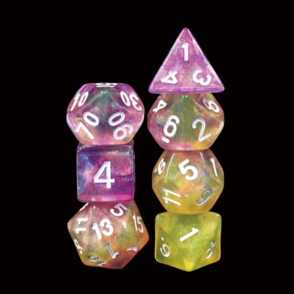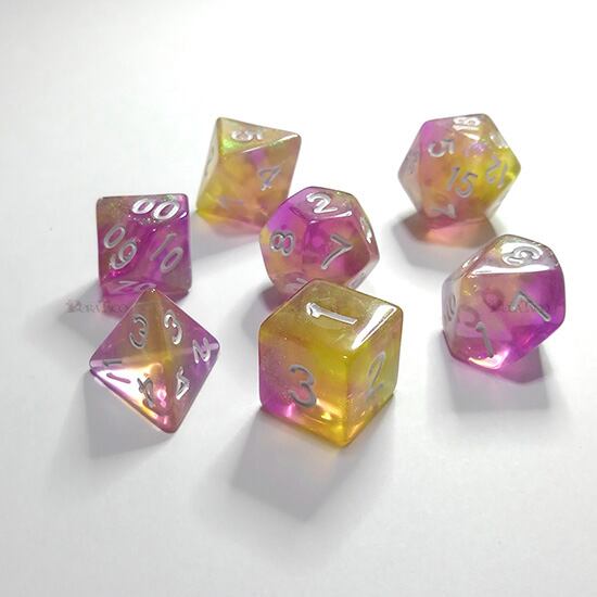 ラメ加工【レモンゼリー】 多面体ダイス7個セット HDAR45