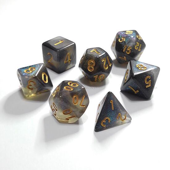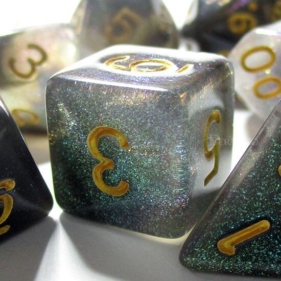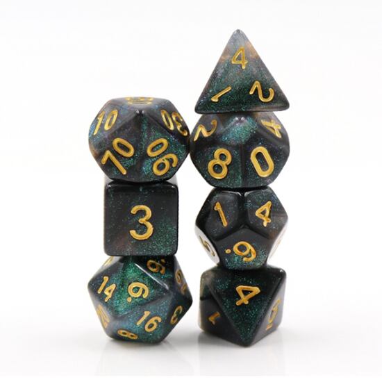 ラメ加工【エメラルドオーロラ】 多面体ダイス7個セット HDAR02