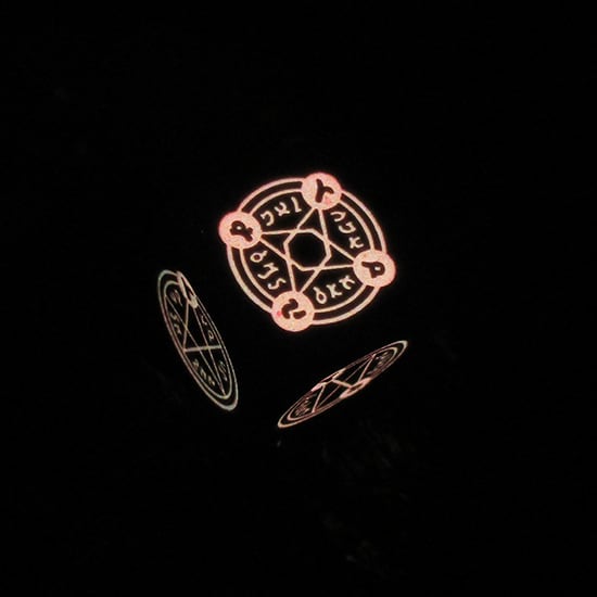 各面に1〜6に対応した魔法陣が描かれているため、魔力を吸収すると暗がりで光を放ちます。