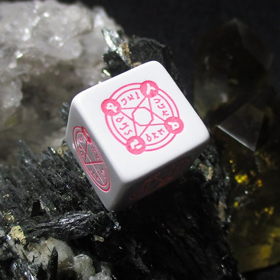 剣と魔法の世界に登場する魔法陣を使用した6面フルカスタムのサイコロ。