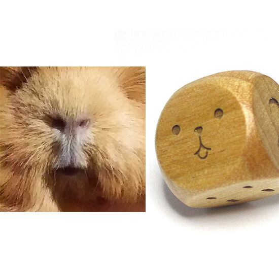 モルモットの鼻の下を再現した木製のアニマルダイス。
