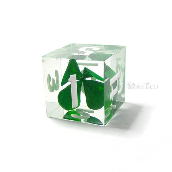 四葉のクローバーを封入したシャープエッジのダイスセットです。