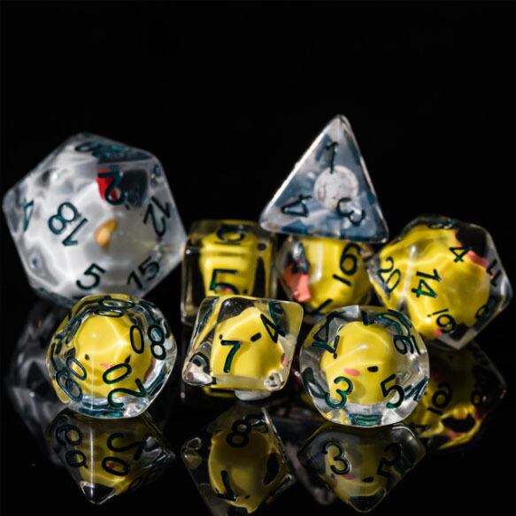 4面は卵、6〜20面はヒヨコ、大きい20面はお父さんです。