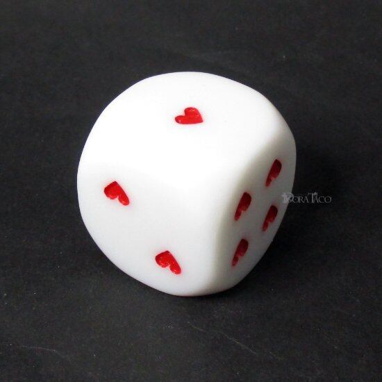 25mm ハート【白&赤】 6面サイコロ heart25mmW