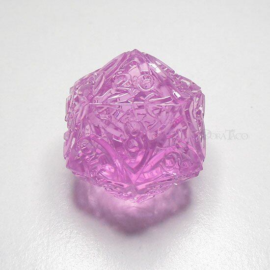 ケルト模様の凹凸と光の演出が美しい、アクリル製20面ダイス。