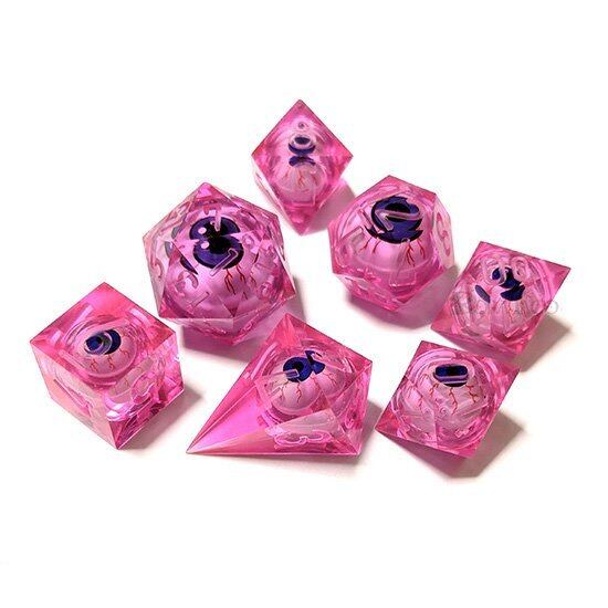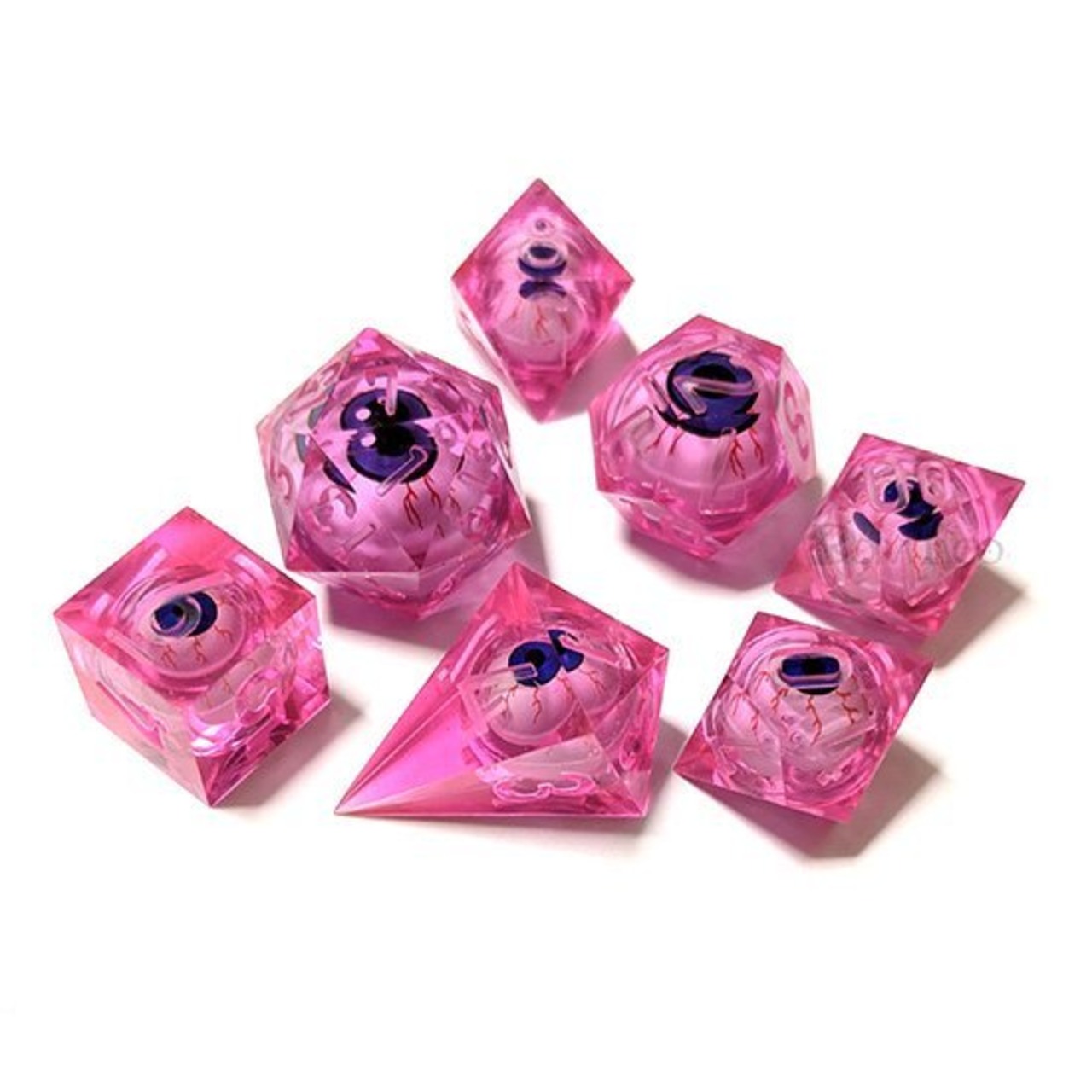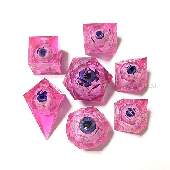 眼球ダイス7個セット【ピンク】ハンドメイドシャープエッジ EyeRollingDiceP
