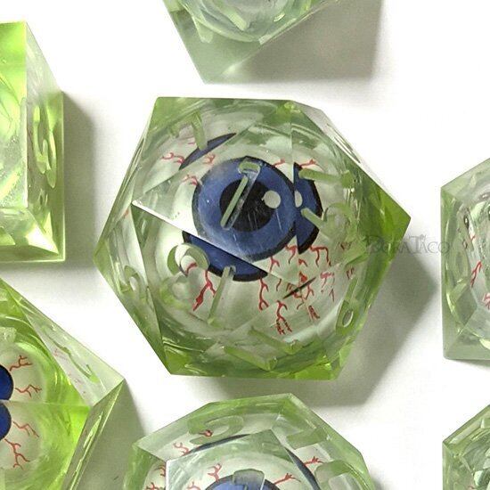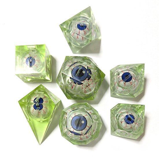 眼球ダイス7個セット【薄グリーン】ハンドメイドシャープエッジ EyeRollingDiceLG