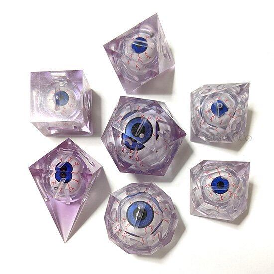 眼球ダイス7個セット【薄パープル】ハンドメイドシャープエッジ EyeRollingDiceLP