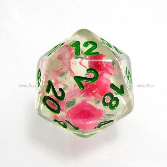 カスミソウの花入り 20面サイコロ【ピンク&グリーン】 UDRFL01pf-D20