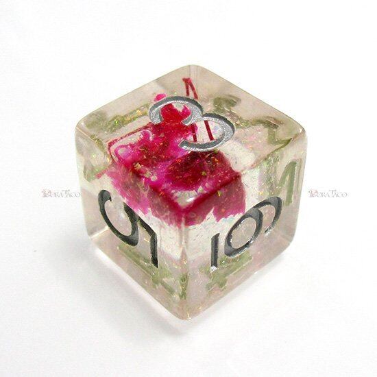 カスミソウの花入り 6面サイコロ【ピンク&シルバー】 UDRFL01pfwp-D6