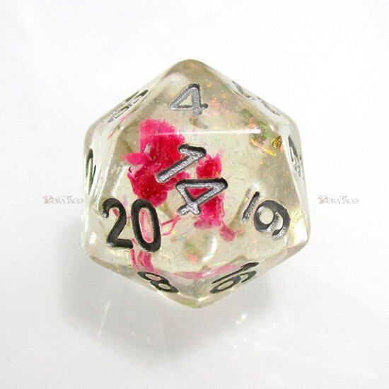 カスミソウの花入り 20面サイコロ【ピンク&シルバー】 UDRFL01pfwp-D20