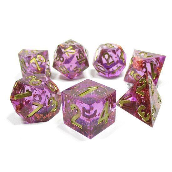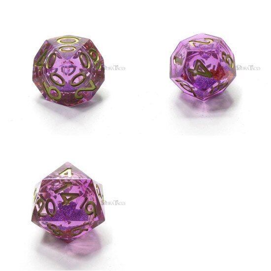 ラメ入り液体がサイコロの中に入った多面体ダイスセットです。