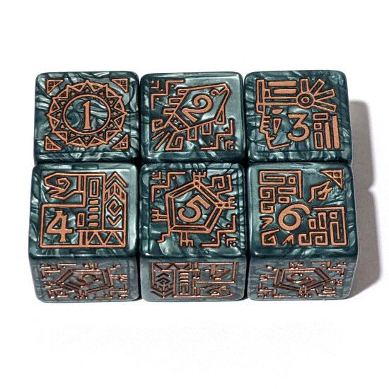何処かで見たことがある模様が描かれた遺跡風6面サイコロです。