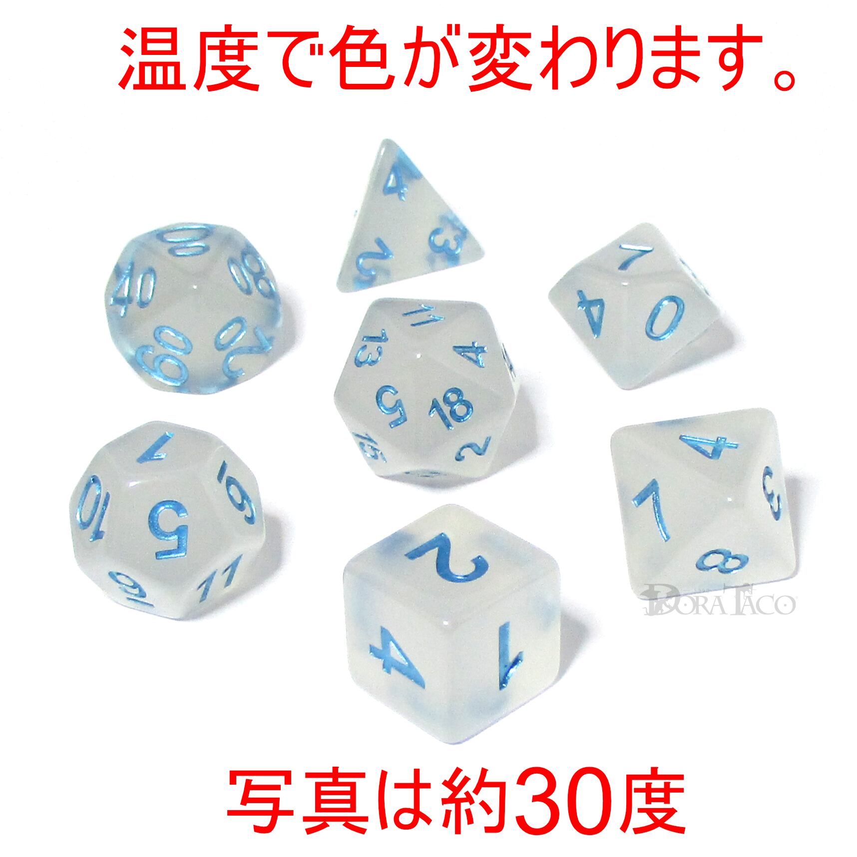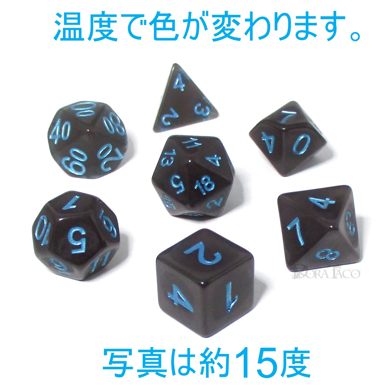 約15度~30度の間で色が変わるダイスセットのため