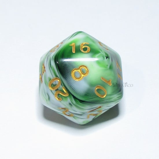 マーブル【グリーン・ホワイト&ゴールド】20面サイコロ/UD2310d20044