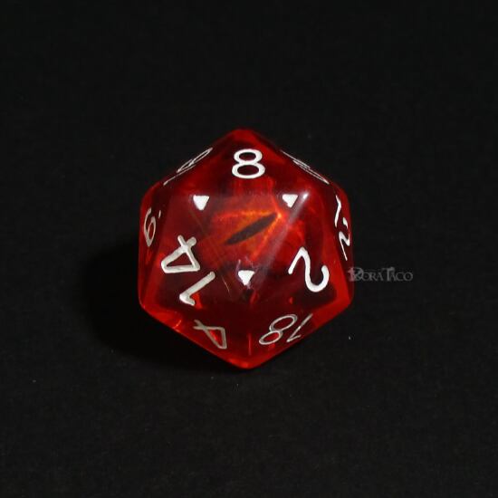 特許技術を使用し、サイコロ内部にドラゴンの眼球を入れ眼球が前を向くように配置したダイスセットです。